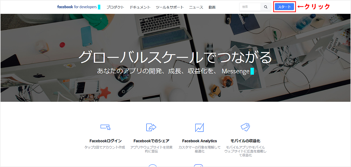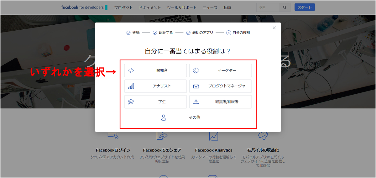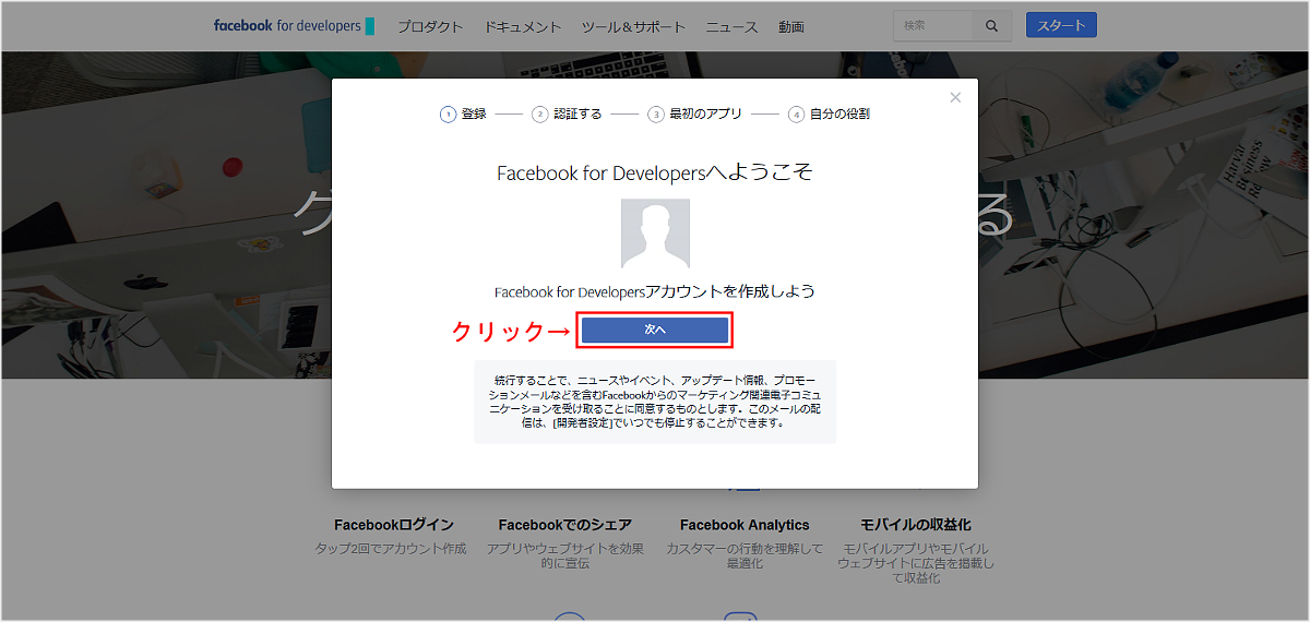 こちらでは、Facebookの「デベロッパー登録」についての手順を説明していきます。