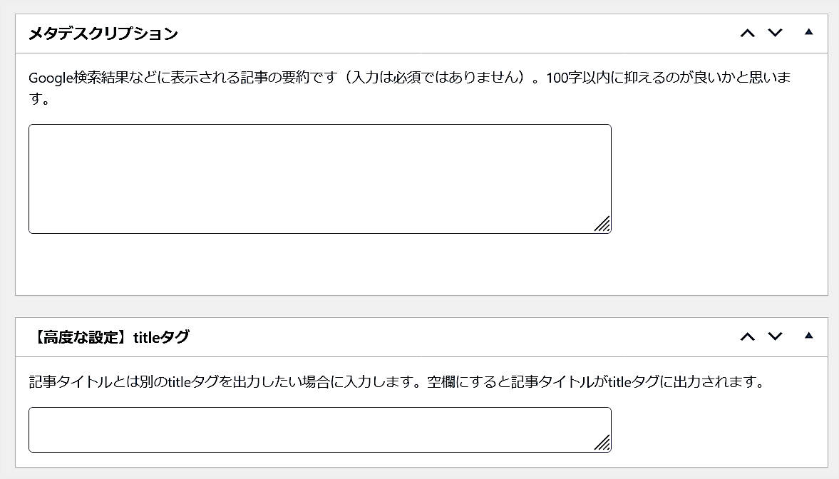 また、SANGOでは記事ごとにタイトルタグとメタディスクリプションを設定できます。